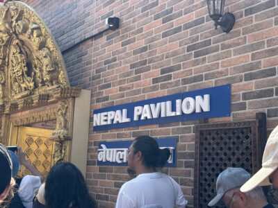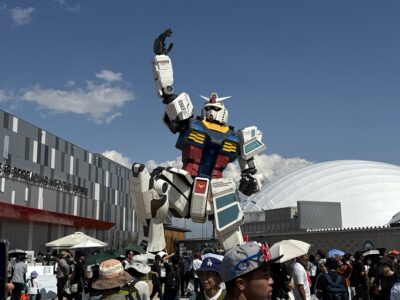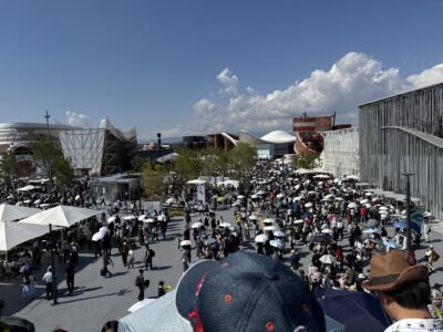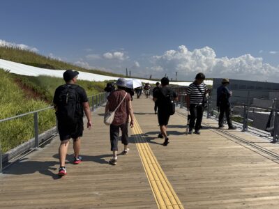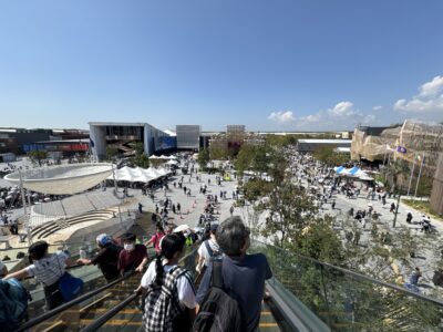 ひとまず11時30分ごろにコンビニで買っておいたおにぎりを食べてそこから色々なパビリオンを外から見学がてら歩きます。