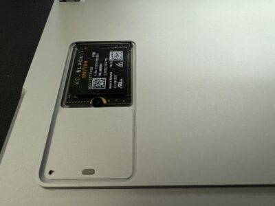 カバーを開けてトルクスドライバーでネジを外し、SSDを取り外して新しい方へ入れ替え。