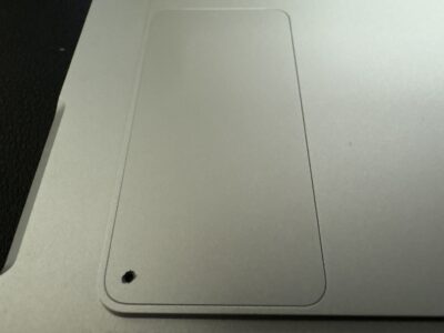 すると↓の画像の通り後ろのカバーをつまようじで開けたらSSDが簡単に交換可能だと分かりました。