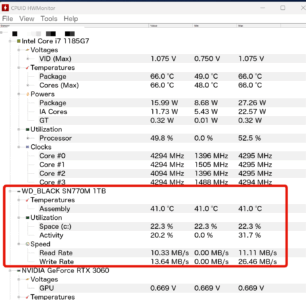 ↑見づらいですがSSDがWD製に置き換わっているのを確認。