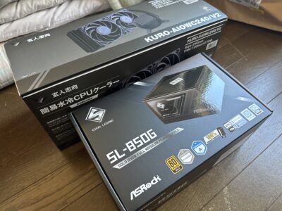 ↑メインPCでもお馴染み、玄人志向の「Kuro 240mm無発光モデル」とastockの「Steel Legend 850w」です。