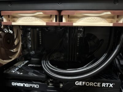 次に簡易水冷クーラー側についてですが、ファンの音はnoctua製らしく常時約900~1000RPMで回っていてもほぼ無音です。