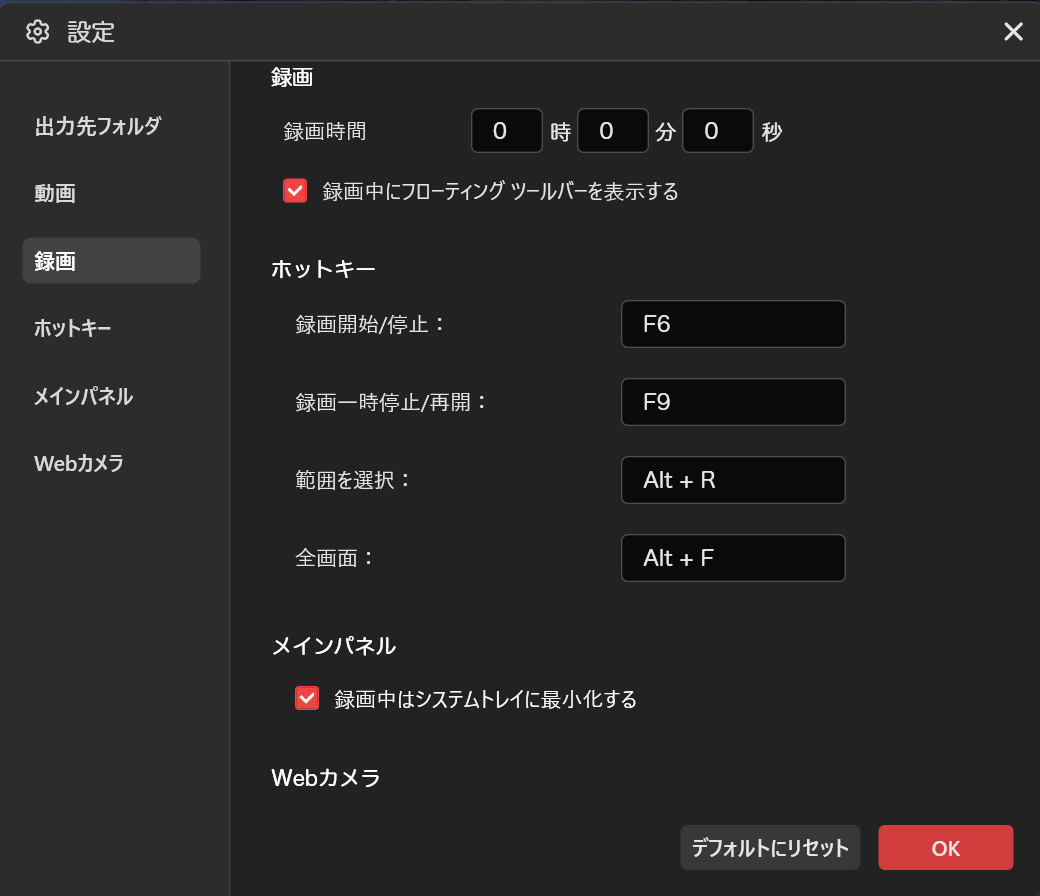 録画中のメイン画面をシステムトレイに入れるかどうかを選択出来ます。