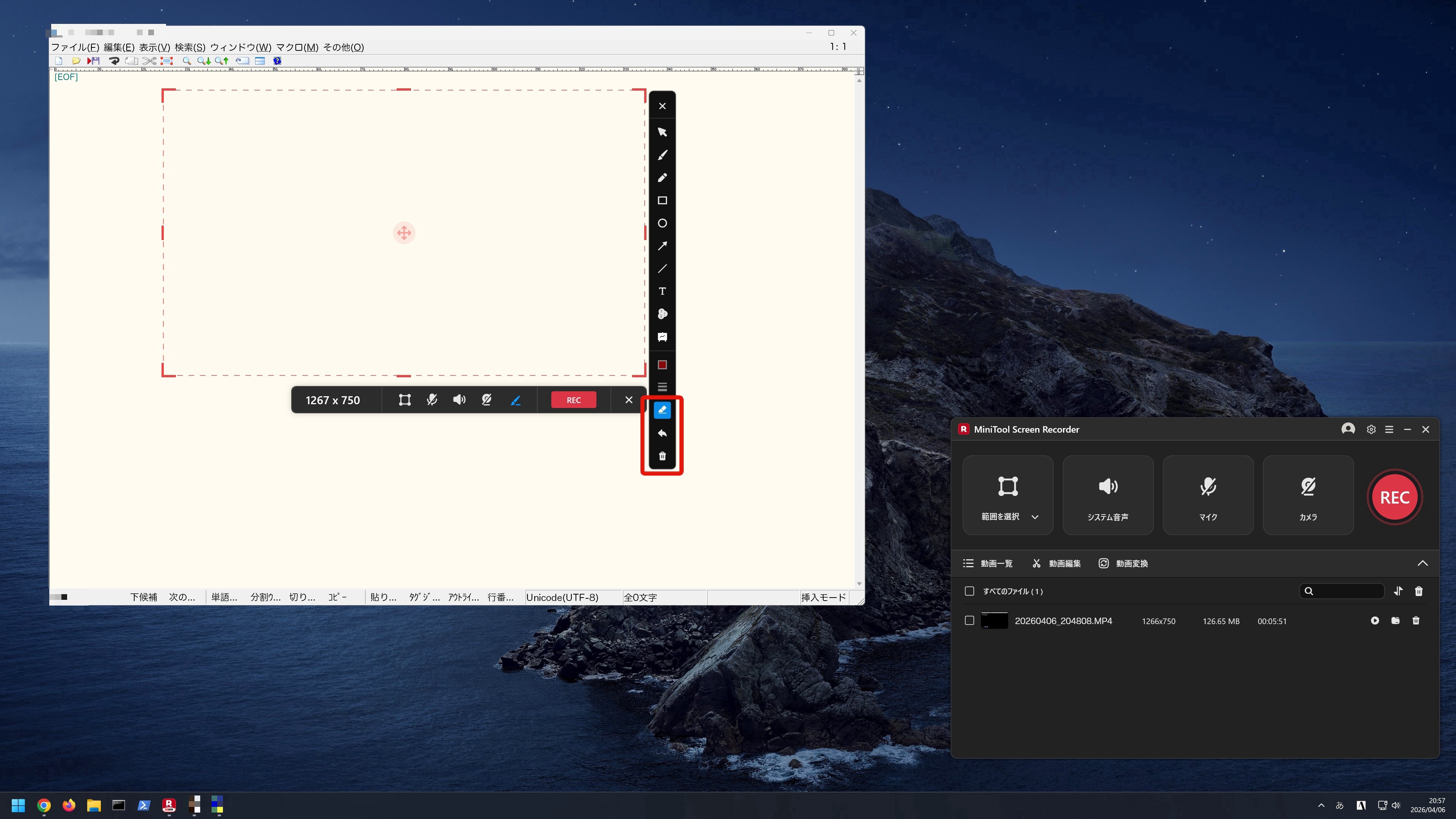 それでは実際にMiniTool Screen Recorderを利用して高画質設定にて動画を撮影、