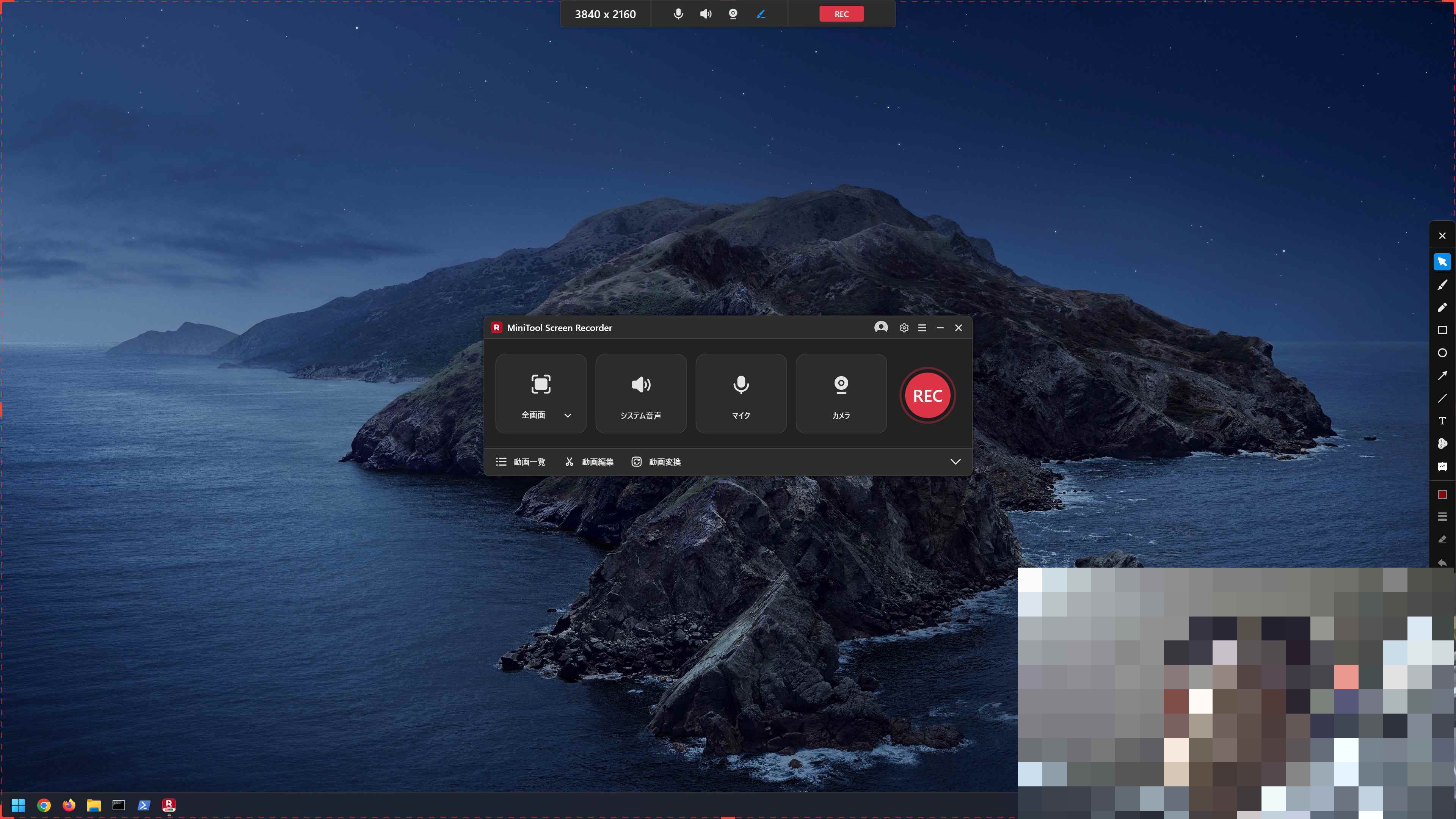 録画中に描画したりカメラと同時に利用する場合はMiniToolへユーザー登録が必要となります。